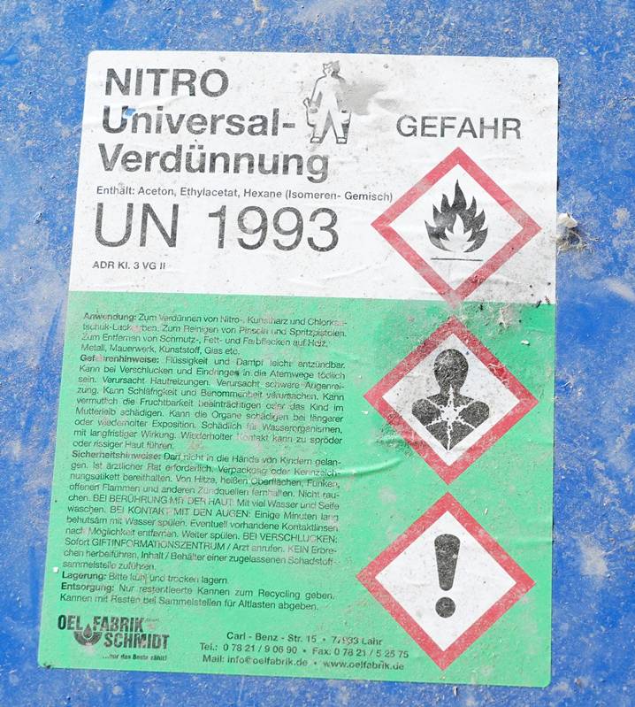 Nitro Universalverdünnung UN1993. Auf Palette. Wohl gefüllt mit 200 Liter.