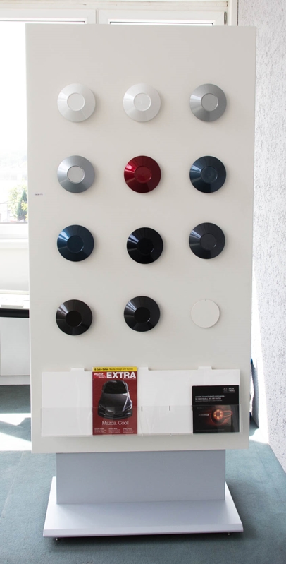 Werbedisplay Größe ca. 100 cm x 60 cm, Höhe ca. 220 cm. Metall und Holz.