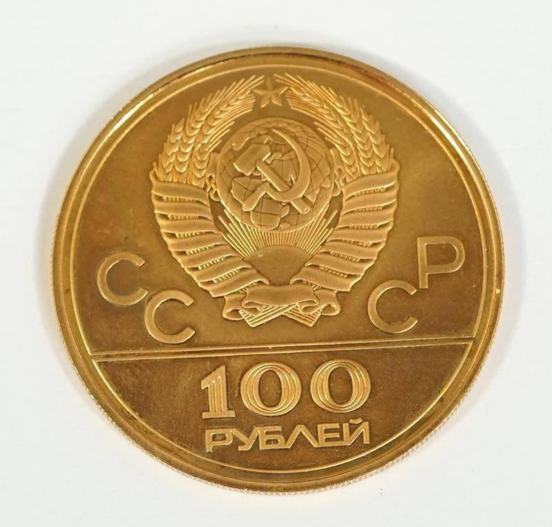 100 Rubel Münze Goldmünze CCCP Russland 1978. Olympia. Durchmesser ca. 30 mm, Gewicht ca. 17,2 Gramm. In der Kapsel.