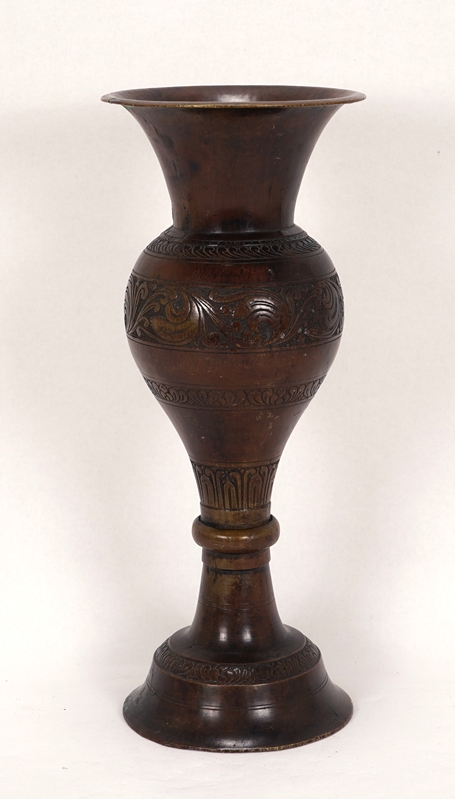Vase Deutsch um 1900. Bronze. Im antikisierendem Stil mit verschiedenen Reliefbändern. Durchmesser ca. 12,5 cm, Höhe ca. 31 cm, Gewicht ca. 1,12 kg.