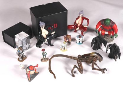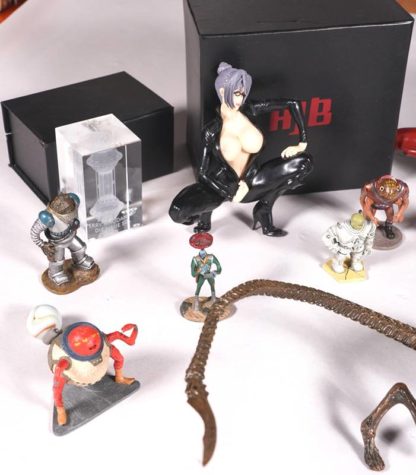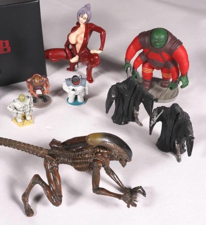 Diverse Figuren in verschiedenen Größen, unter anderem HJB "Icho Tolot" in Original-Verpackung (Höhe ca. 12 cm) sowie sechs weitere, kleinere Figuren (Höhe bis ca. 8 cm) und ein Glasmodell "Die Neue Sol" in Original-Verpackung. Dazu eine Alienfigur, zwei weitere, schwarze Science Fiction Figuren und zwei weibliche Comic-Figuren.