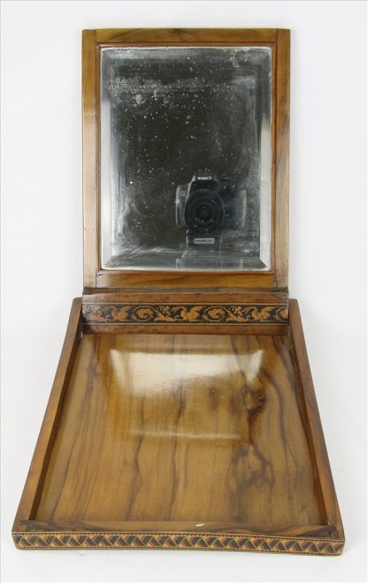 19. Jh. Aufklappbar. Palisander und Vogelaugenahorn sowie weitere Edelhölzer. Reiche Intarsierung. Größe ca. 26,5 x 19 cm. Altersbedingt guter Zustand.