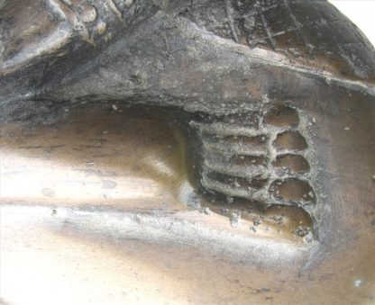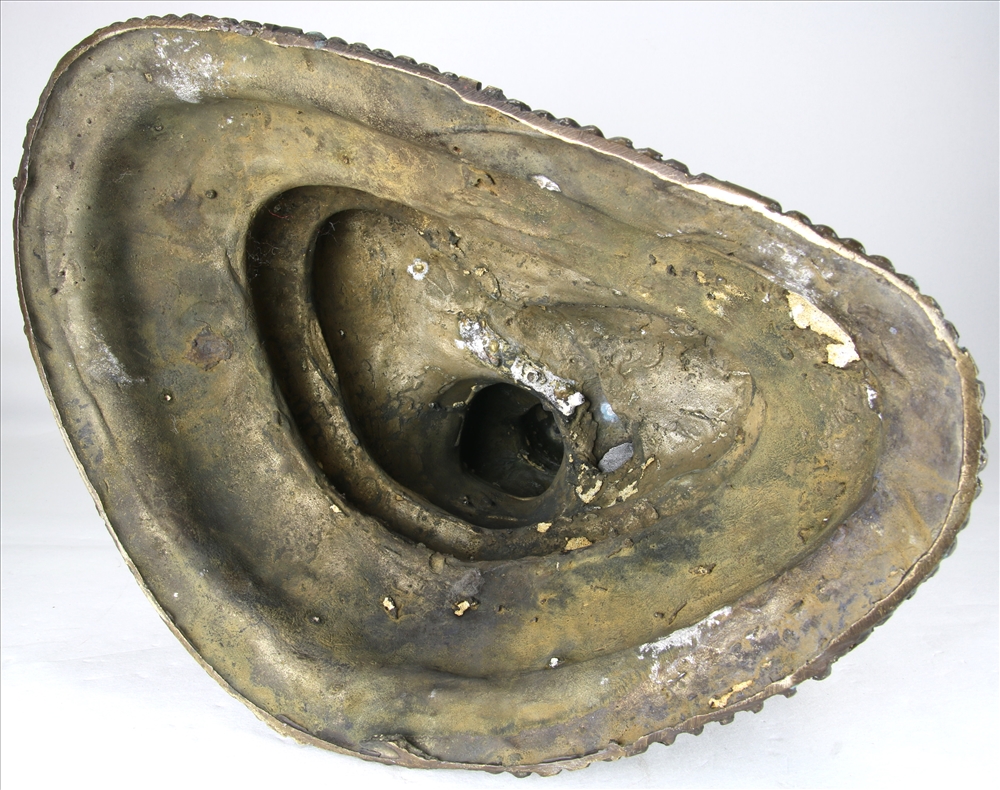 Himalaya, frühes 20. Jhdt. Sitzende Tara auf Lotusthron mit Opfergefäß in der linken Hand, die rechte Hand in der Haltung der Erdanrufung. Bronze. Größe ca. 35,5 x 23 cm, Höhe ca. 54 cm. Gewicht, 8,6 Kilogramm. Altersbedingter Zustand.