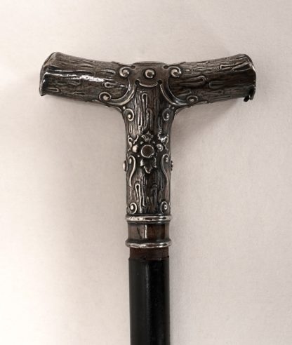 Spazierstock Deutsch um 1900. Ebonisiertes Holz mit Silbergriff (geprüft). Länge ca. 82 cm.