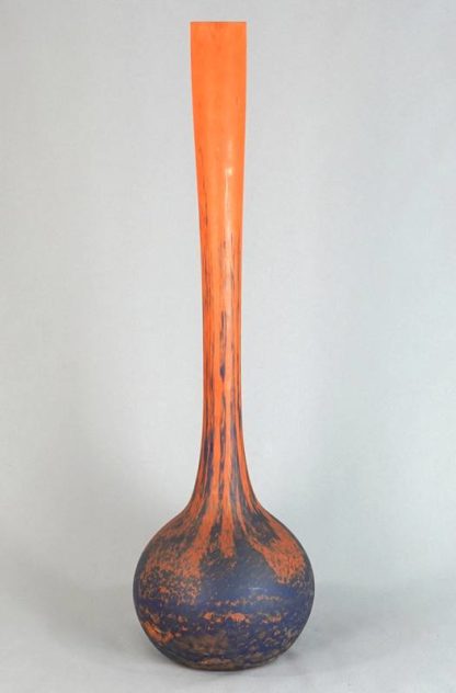 1887 Chatenois - 1953 Toulouse. Enghalsvase mit kugeligem Korpus und langem Hals. Glas mit blauen und orangenen Pulveraufschmelzungen. Unten signiert und bezeichnet Nancy. Durchmesser ca. 20 cm, Höhe ca. 71 cm. An der Öffnung minimal bestoßen.