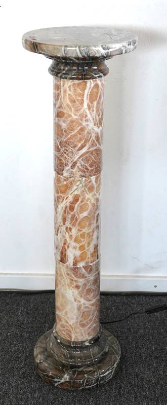 Marmor. Blumensäule mit beleuchtetem Schaft. Durchmesser ca. Höhe ca. 113 cm. Funktion nicht geprüft. Kein Versand möglich, wir empfehlen gerne eine Spedition.