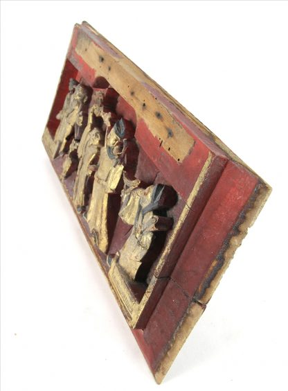 19. Jh. Holz geschnitzt und polychrom bzw. goldstaffiert. Größe ca. 37,5 x 17 cm. Altersbedingt guter Zustand.