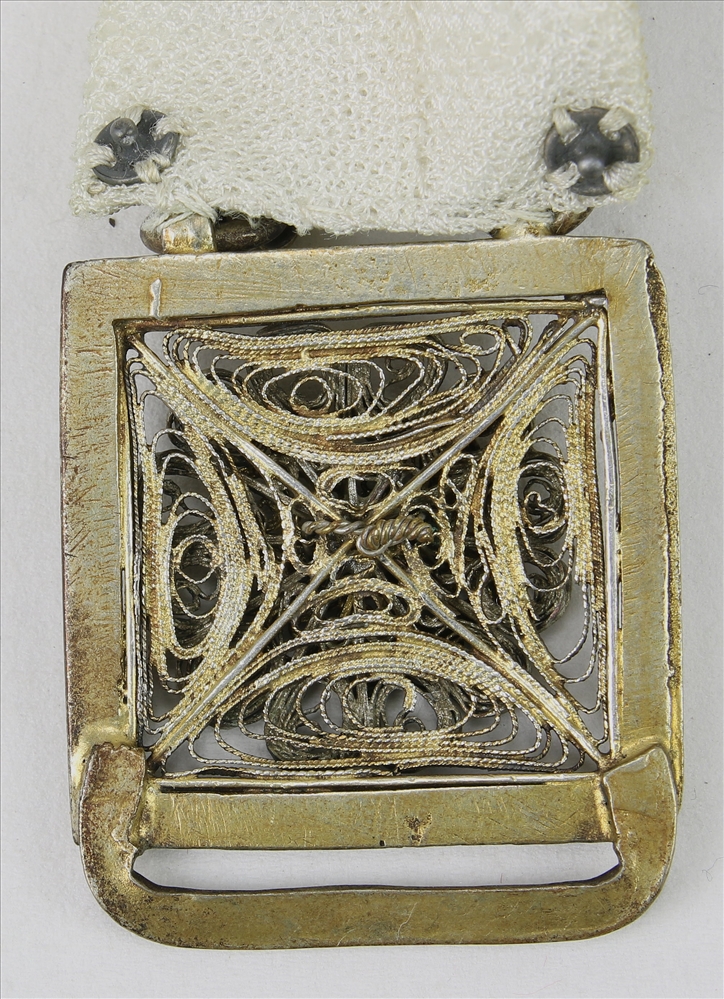 Wohl Indien 19. Jh. Qualitätsvoll durchbrochen gearbeitet. Silber teils vergoldet (nicht punziert, geprüft). Länge ca. 68 cm, Breite ca. 4 cm. Altersbedingt guter Zustand.