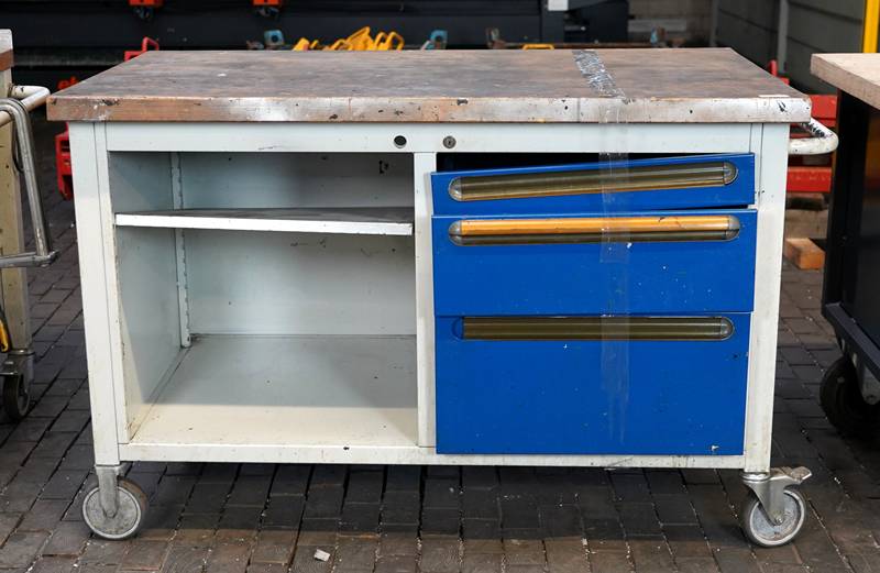 Werkbank mobil ca. 130 x 70 cm. Leer.