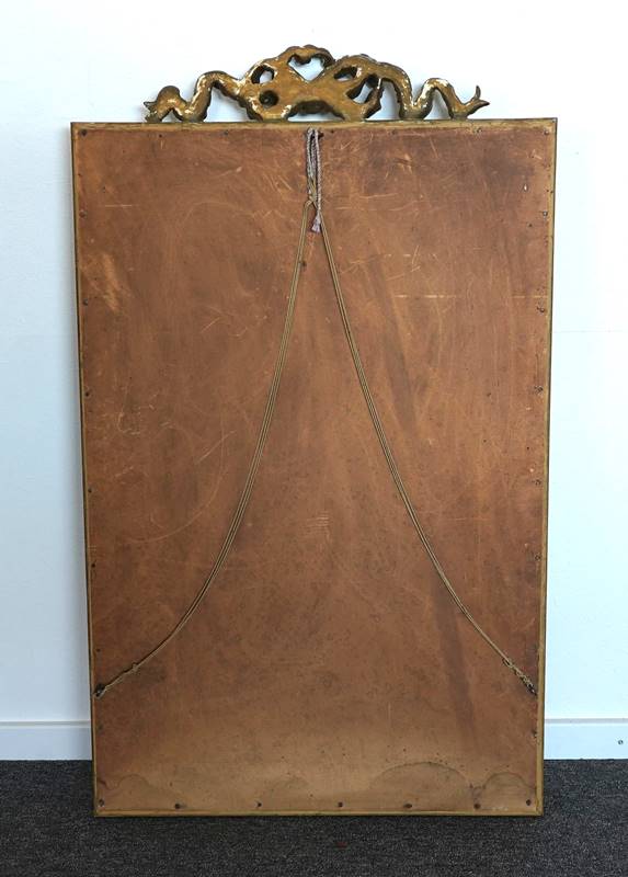 Spätere Ausführung. Goldfarbener Rahmen mit Schleifenbekrönung. Größe ca. 105 x 62 cm. Rahmen teils bestoßen. Bitte beachten Sie die hohen Versandkosten aufgrund des großen Formats.