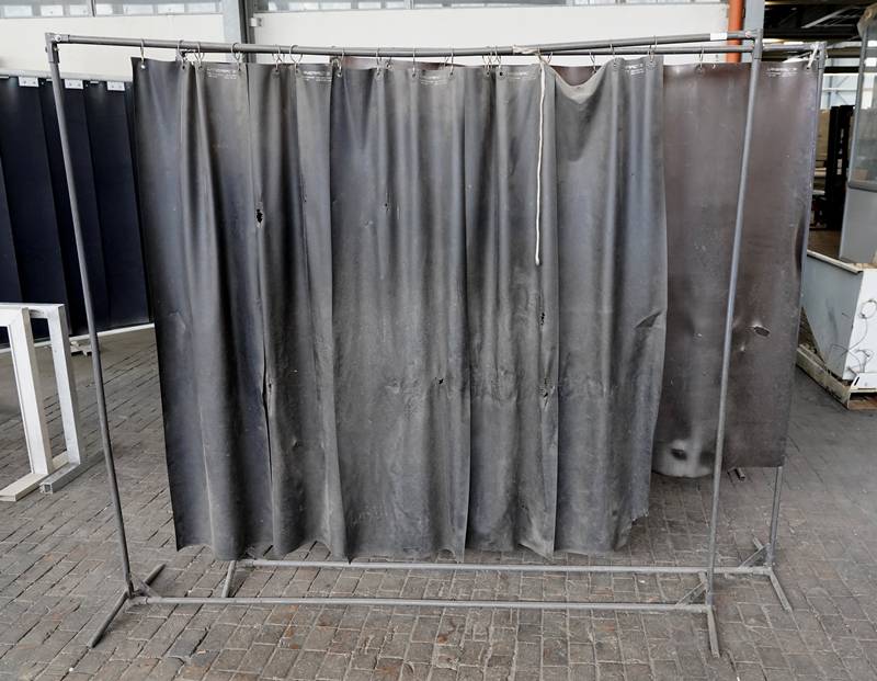 Zwei Schweißschutzwände Lansarc auf Füßen.