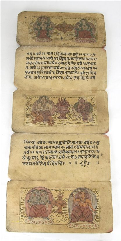 Wohl Tibet/Nepal 19. Jh. Mehrere Seiten auch mit sehr schönen Abbildungen. Größe ca. 19 x 9 cm. Guter, altersbedingter Zustand. Dazu ein weiteres Leporello.