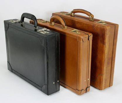 Drei Lederaktenkoffer 20. Jh. Größter ca. 45 x 36 x 10 cm. Gewicht zusammen ca. 6,7 Kilogramm. Schöner Zustand.