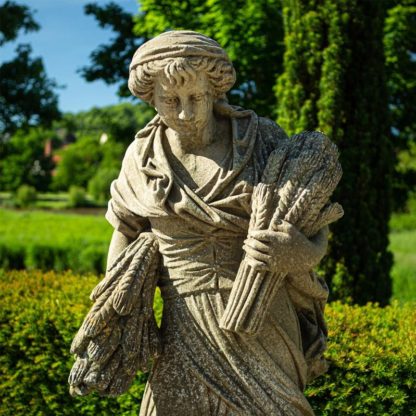 21. Jahrhundert Steinguss, antikisiert patiniert. Personifikationen der Vier Jahreszeiten aus Steinguss mit antikisierter Oberfläche. Winter mit Schal und Feuerholz, Sommer mit Trauben, Frühling mit Blumen und Herbst mit Ähren. Größe ca. 150 x 55 x 44 cm. Dieses Los befindet sich an einem abweichenden Standort in Bayern und kann nicht besichtigt werden. Versand nicht möglich, nur Abholung.