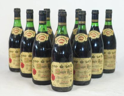 Bodegas Riojanas Monte Real 1982 Rioja Reserva. Zehn Flaschen 0,75l. Kapseln meist intakt, Füllstand ca. Hals unten. Zustand wie abgebildet. Aus einer großen, rheinländischen Privatsammlung.