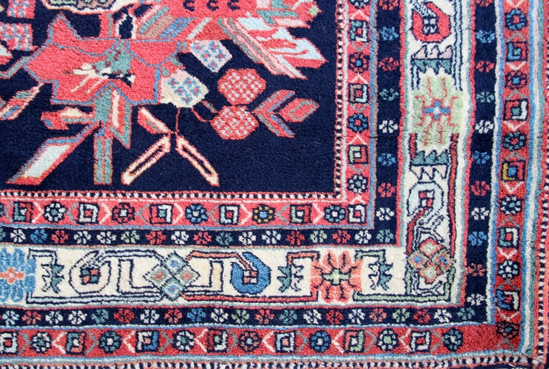 Shiabakir Nordpersien 20. Jh. Wolle auf Wolle. Fünf Bordüren und gemustertes Mittelfeld mit geometrischer bzw. abstrahiert floraler Ornamentik. Größe ca. 300 x 200 cm, Knüpfdichte ca. 16 Knoten/qcm. Schöner Zustand. Shiabakir. Northern Persia, 20th century Wool on wool. Five borders and a patterned central field with geometric and abstract floral ornamentation. Approx. 300 x 200 cm, knotting density: 16 knots/sq cm. Beautiful condition.
