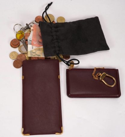 Cartier Brillenhülle und Schlüsselmäppchen aus Nachlass sowie ein Säckchen mit Bargeld ca. 34.- Euro. Bitte selbst besichtigen.
