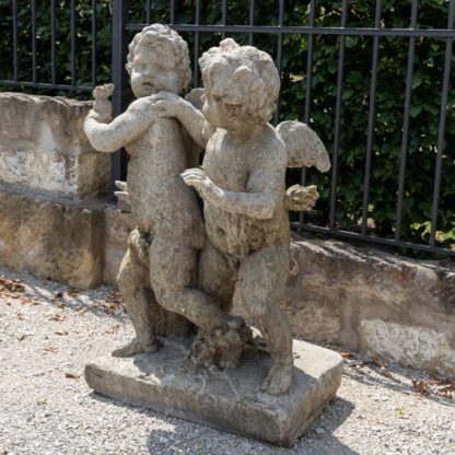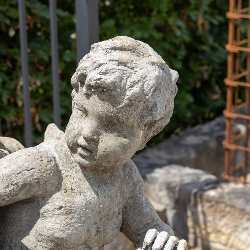 Gartenstatue Steinguss. Zwei spielende Putten mit Flügeln. Größe ca. 125 x 80 x 60 cm. Dieses Los befindet sich an einem abweichenden Standort in Bayern und kann nicht besichtigt werden. Versand nicht möglich, nur Abholung.