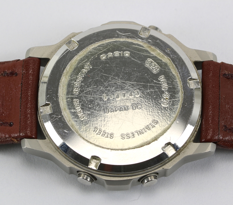 Frühe Solarquarzuhr. Alarm- und Chronofunktion. DBW 320, 888. Lederband stärker gebraucht. Nicht geprüft.