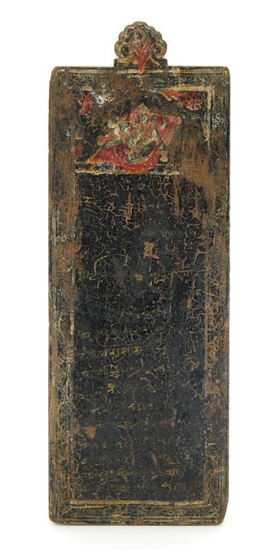 Wohl Persien 18./19. Jh. Holz mit polychromer Bemalung und diversen Schriftzeichen. Größe ca. 52,5 x 19 cm. Altersbedingter Zustand.