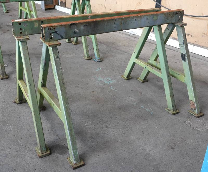 Zwei Böcke Stahl grün lackiert, ca. 80 cm Höhe.