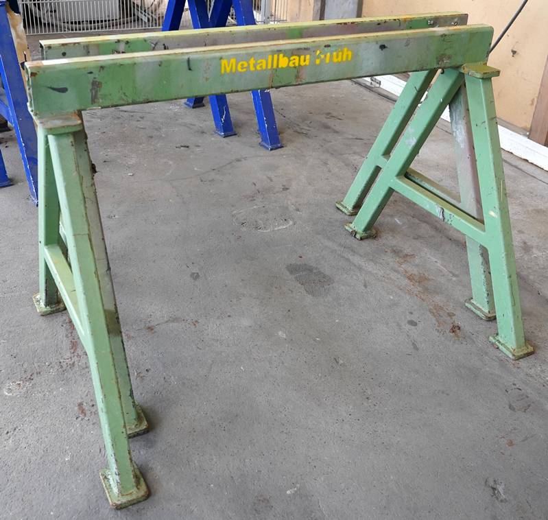 Zwei Böcke Stahl grün lackiert, ca. 80 cm Höhe.