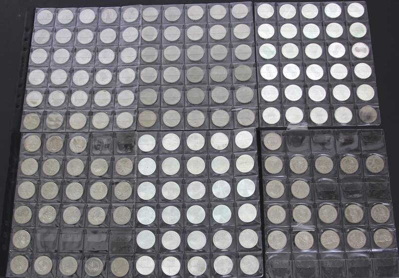 Konvolut Münzen DM 162 x 5 DM Gedenkmünzen. Diverse Jahrgänge, Prägeanstalten und Zustände. Bitte selbst besichtigen.