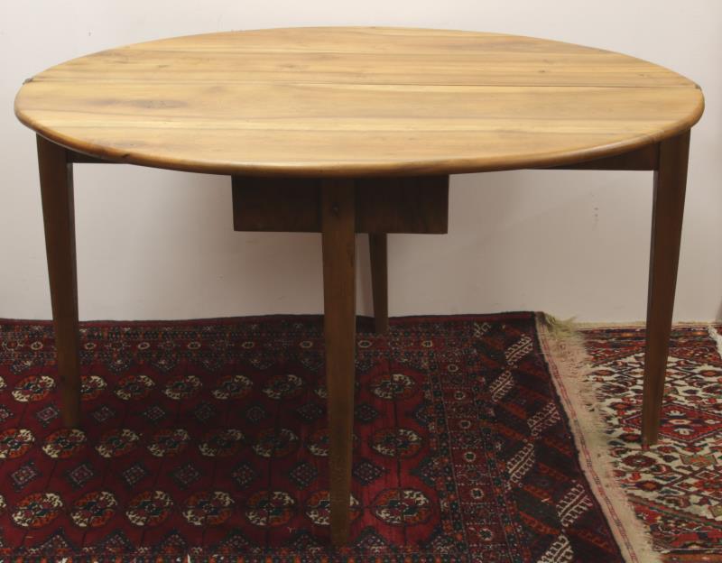 Frankreich 19. Jahrhundert. Konsoltisch mit klappbarer Platte. Nußbaum. Durchmesser ca. 130 cm. Höhe ca. 76 cm. Altersbedingter Zustand.