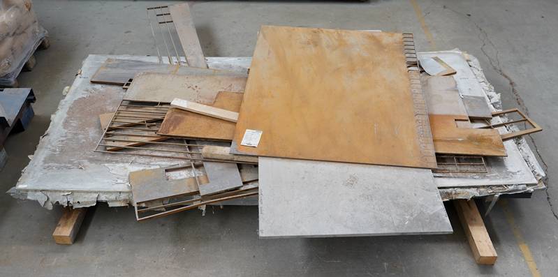 Großer Posten mit Platten die unteren aus Stahl ca. 400 x 200 cm.