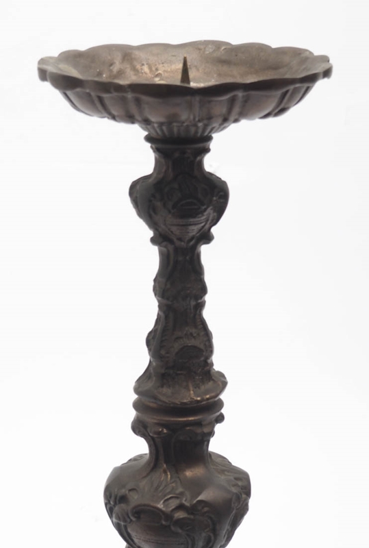 Deutsch 20. Jh. Bronze. Auf dreipassigem Sockel gegliederter Schaft. Breite, profilierte Tropfschale mit Dorn. Höhe ca. 59 cm, Gewicht ca. 5,6 Kilogramm.