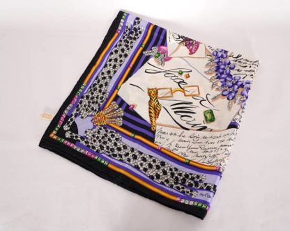 Must de Cartier Seidentuch Frankreich 20. Jh. Seide. Panthère in Violett. Unten mittig bezeichnet must de Cartier sowie seitlich Etikett. Größe ca. 85 x 88 cm.
