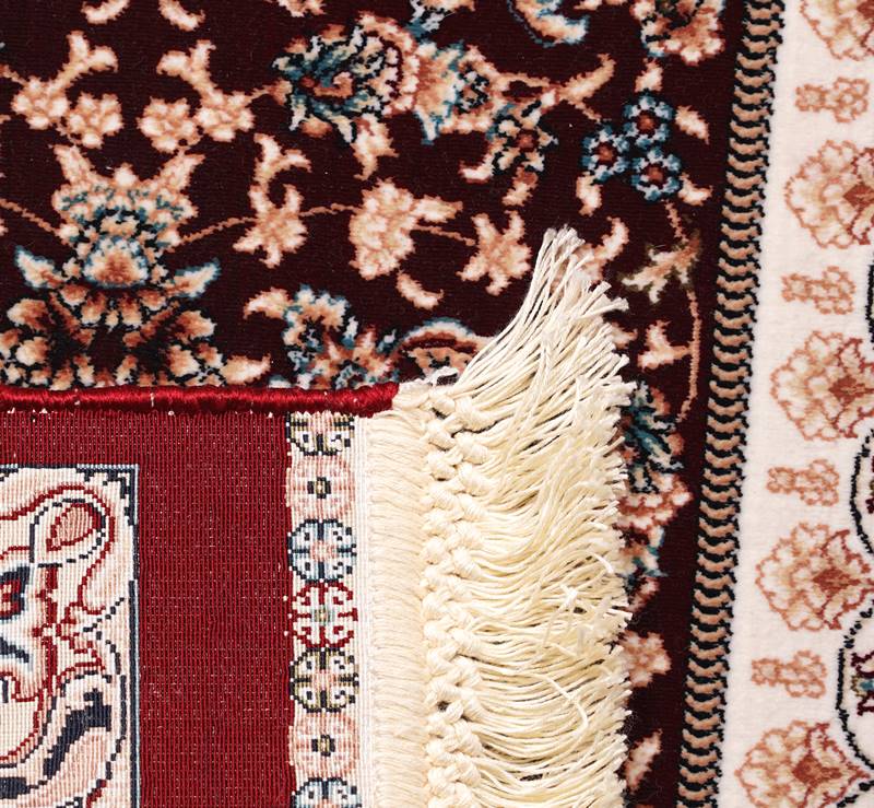 Persien 20. Jh. Seidenteppich. Maschineller Gebetsteppich mit einer Bordüre, darauf ein aufgeschlagener Koran mit Vers, Signatur jeweils am oberen und unteren Rand des Teppichs. Innenfeld gerahmt von einer architektonischen Nische, mit Blumenranken darunter. Größe ca. 88 x 57 cm. Zustand wie abgebildet.