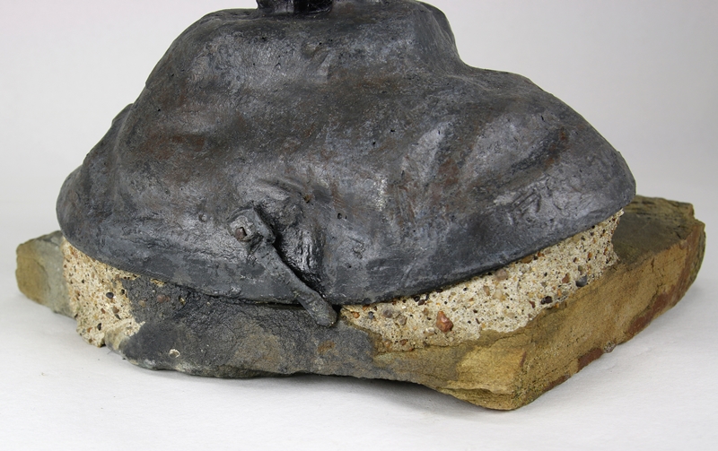 Um 1900. Stehender Putto auf Steinsockel montiert. Metall, patiniert. Zweifach auf Fahne bezeichnet. Größe ca. 25 x 22 cm, Höhe ca. 60 cm, Gewicht ca. 17,5 Kilogramm.