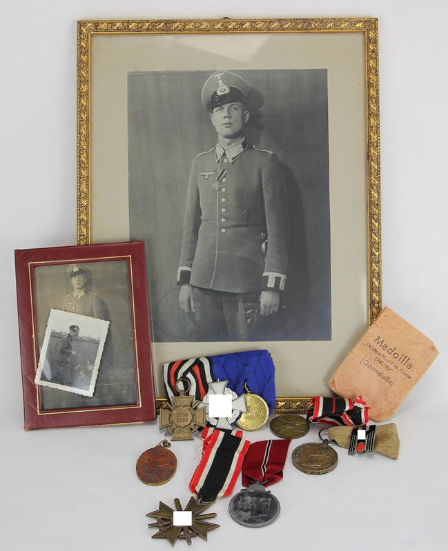 Konvolut Orden Diverse Orden, meist WK II. Dazu zweimal ein gerahmtes Foto. Größe des Rahmens ca. 33 x 26 cm.