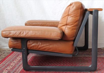 Zanotta Italien 1960-er Jahre. Stahl geschwärzt und pulverbeschichtet und braunes Leder. Größe ca. 105 x 105 cm, Höhe ca. 77 cm. Altersbedingter Zustand wie abgebildet.