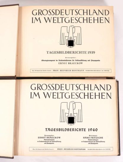 Großdeutschland im Weltgeschehen Drittes Reich. Zwei Bände der Fotoalben Großdeutschland im Weltgeschehen, 1939 und 1940. Größe ca. 31 x 43 cm. Zustand wie abgebildet, nicht kollationiert.
