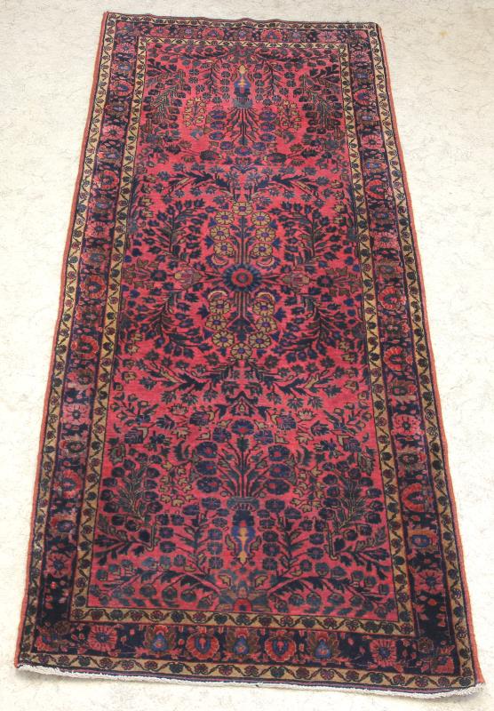 Um 1930 (Reimport). Wolle/Baumwolle. Größe ca. 190 x 75 cm. Altersbedingt guter Zustand. Ehemaliger Verkaufspreis 6.500.- Euro. Ehemals süddeutsche Privatsammlung.