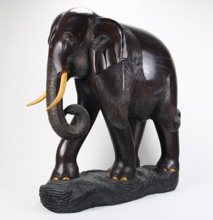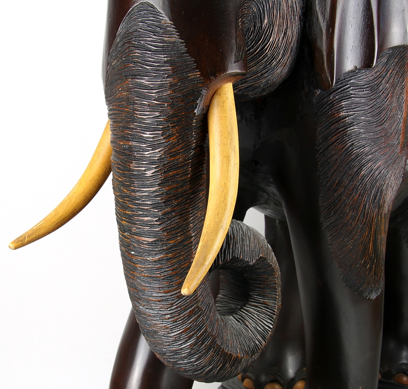 Ferner Osten 20. Jh. Naturalistische Darstellung. Holz geschnitzt und schwarz patiniert. Größe ca. 54 x 25 cm, Höhe ca. 64 cm, Gewicht ca. 24 Kilogramm.