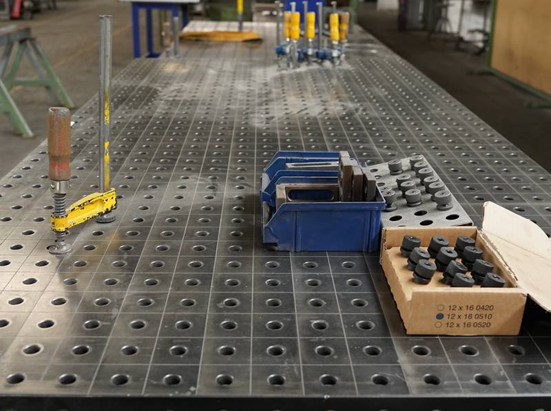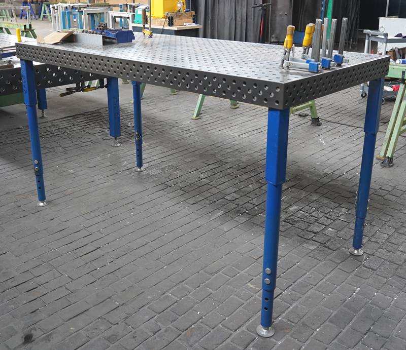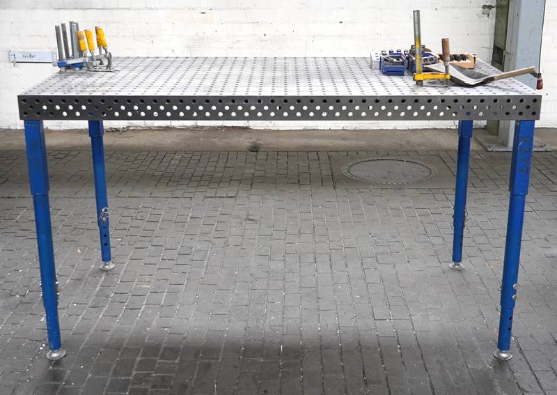 Schweißtisch Auf vier höhenverstellbaren Füßen. Ca. 200 x 100 cm. Mit Zubehör.