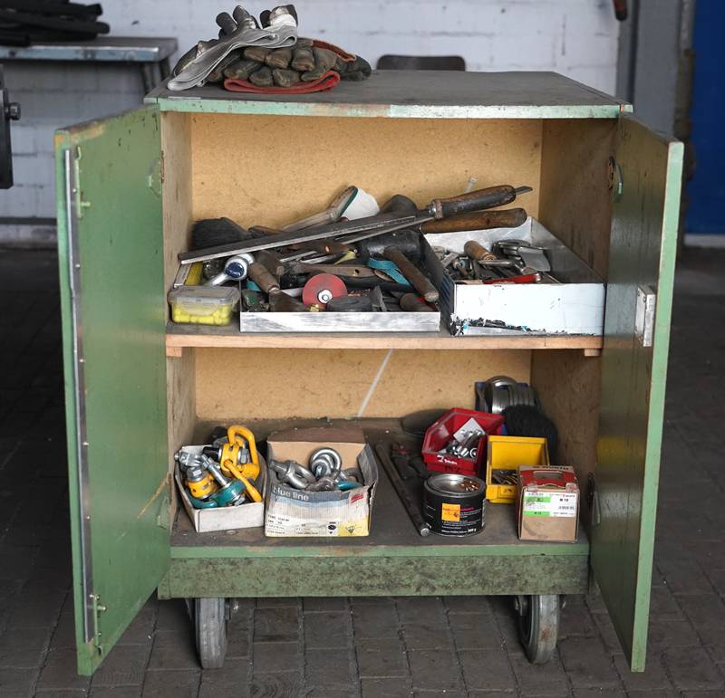 Materialcontainer mobil. Mit Inhalt.