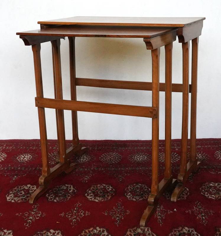 Zwei Satztische England 19. Jh. Nussbaum. Zwei ineinander schiebbarer Beistelltische. Größe ca. 60 x 34 cm, Höhe ca. 68 cm.