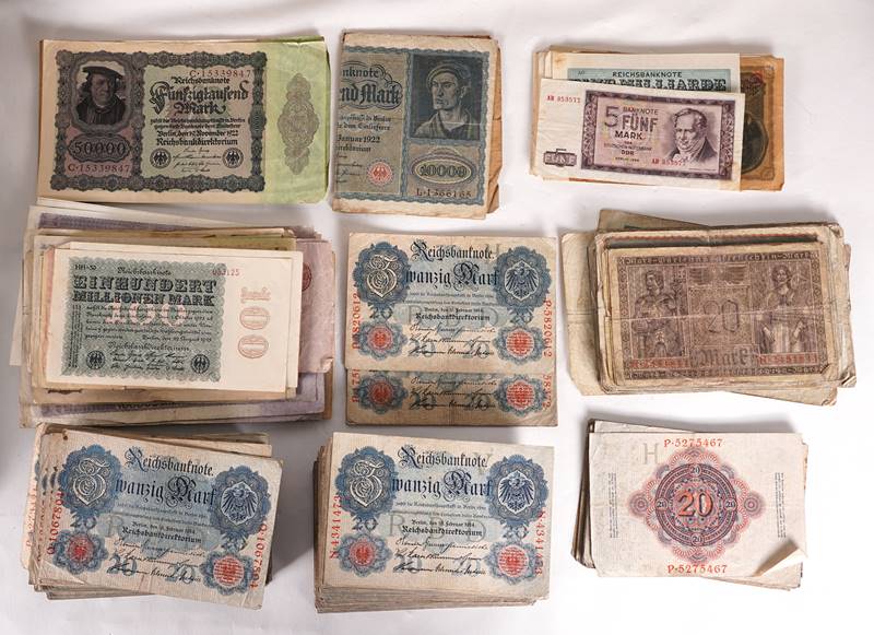 Konvolut Briefmarken, Notgeld, Inflationsgeld