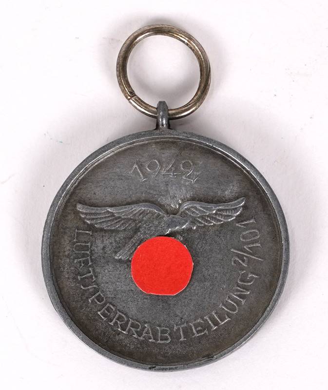Seltene Medaille Luftgau III. Reich 1942, Luftsperrabteilung 2/101. Durchmesser ca. 32 mm, 11,4 Gramm mit Ring. Nicht magnetisch. Zustand wie abgebildet.