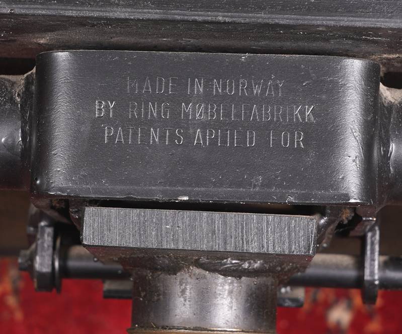 Norwegen 20. Jh. Ring Mobelfabrikk. Braunes Leder. Je auf vier Chromfüßen. Verstellbar. Größe ca. 86 x 86 cm, Höhe ca. 97 cm, Sitzhöhe ca. 45 cm. Leder teils stärker beansprucht.
