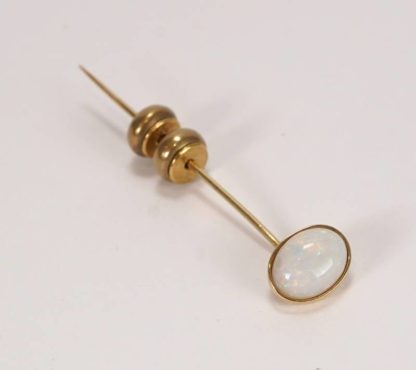 Gold 585. Nadel mit ovalem, weißem Opal. Verso punziert. Länge ca. 4,2 cm, Gewicht ca. 0,83 Gramm. Dabei zwei Stopper, punziert 750, Gewicht ca. 0,4 Gramm.