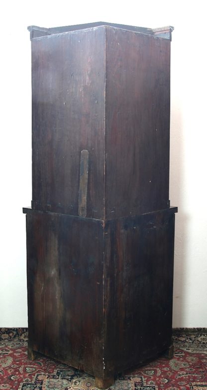 Biedermeier Eckvitrine Deutschland frühes 19. Jh. Nussbaum. Eintüriger Korpus mit Vitrinenaufsatz. Größe ca. 91 x 55 cm, Höhe ca. 199 cm. Zustand wie abgebildet.