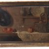 Stillleben Um 1900. Schauseitig Stillleben mit Äpfeln, verso eine wohl unvollendete Landschaft. Öl auf Platte. Größe ca. 40 x 73 cm. Rahmen ca. 53 x 83 cm.