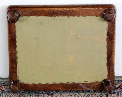 Biedermeier Fußbank Deutsch frühes 19. Jh. Kirschbaum. Rechteckiger Korpus auf Knollenfüßen, grünes Polster. Größe ca. 35 x 28 cm, Höhe ca. 13 cm.