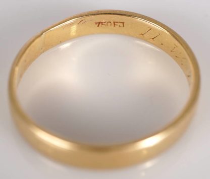 Zwei Goldringe Ehering Gelbgold, 750 punziert, ca. 4,1 Gramm und ein Perlring mit fehlenden Steinen Gold 585 punziert, ca. 3,5 Gramm. Ringgröße ca. 62. Zustand wie abgebildet.