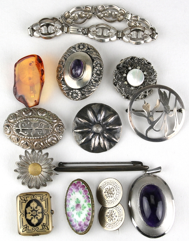 Historismus/Jugendstil. Diverse Gegenstände, teils Silber, teils versilbert, teils andere Materialien. Bitte selbst besichtigen.